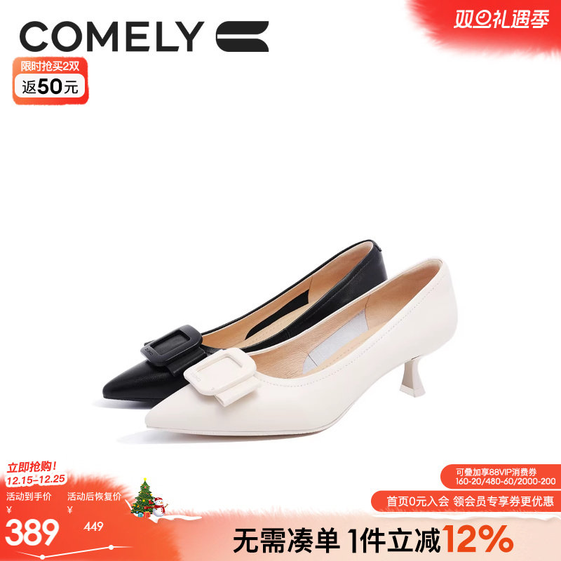 意尔康女鞋2025新款浅口单鞋真皮尖头细跟气质通勤职场面试高跟鞋