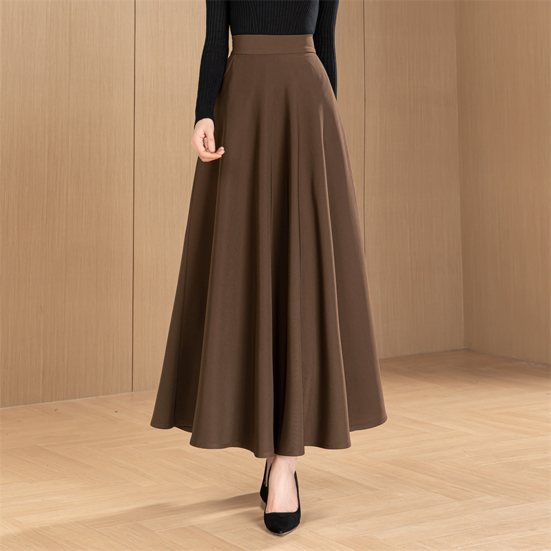 秋冬新款高端咖色大摆半身裙女复古大码A字裙百搭气质长裙伞裙子