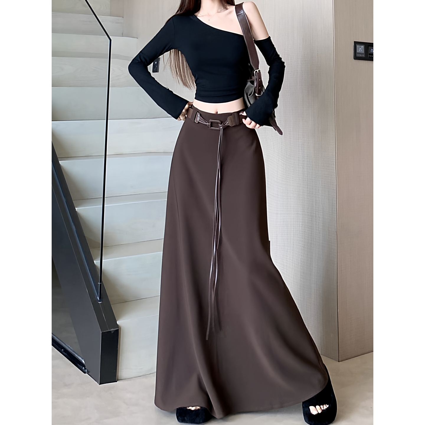 大码咖色半身裙女秋季设计感高腰a字裙子显瘦气质垂坠感大摆长裙