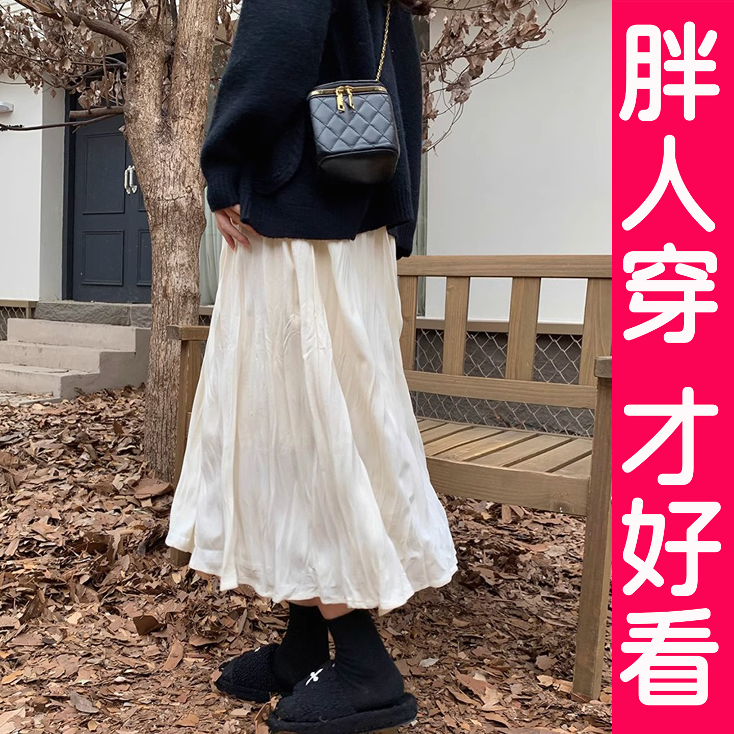 大码a字裙半身裙女2025新款高腰小个子褶皱大摆垂感长裙胖mm秋冬