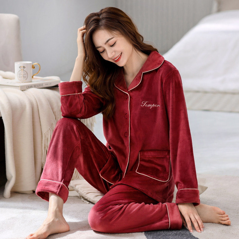 睡衣女珊瑚绒春秋款加绒加厚红色本命年婚庆高级感冬季家居服套装