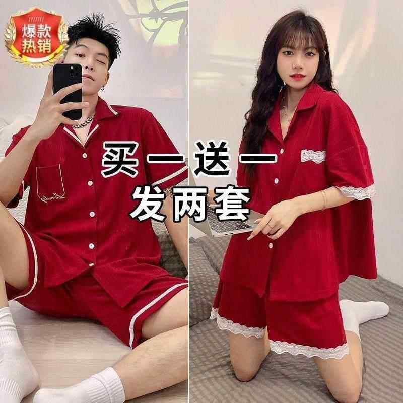 婚庆睡衣买一送一结婚情侣套装夏季短袖喜庆红色高档本命年男女家