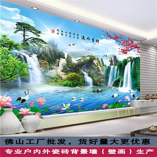 瓷砖背景墙 山水客厅电视背景墙砖3D雕刻风景户外墙壁画 流水生财