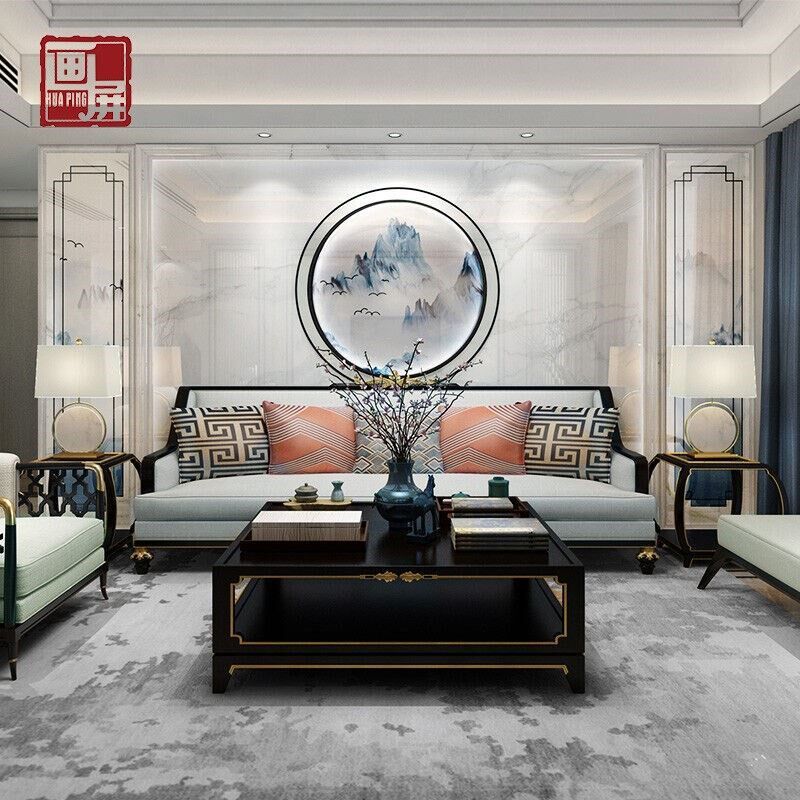 客厅瓷砖背景墙 简约现代沙发中式 电视艺术背景墙砖微晶石影壁画