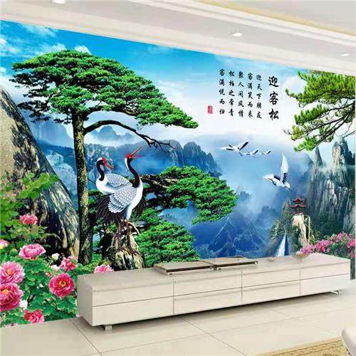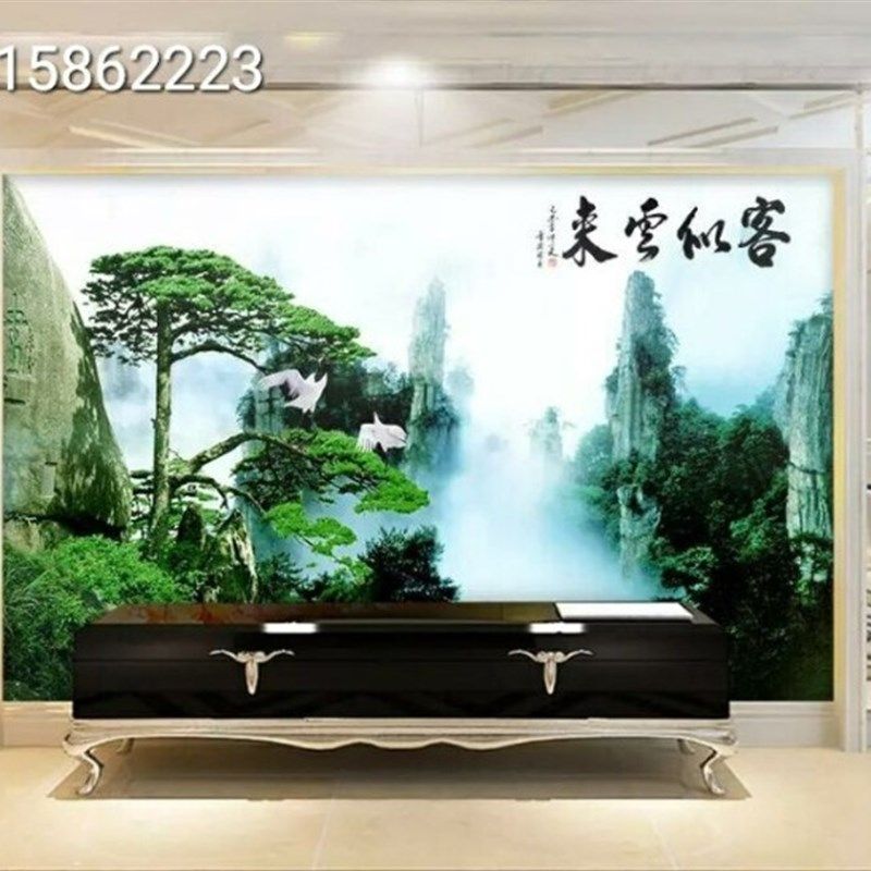 瓷砖背景墙大型山水风景画迎客松中式客厅电视背景墙砖画人间仙境