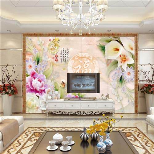 瓷砖背景墙客厅电视背景墙瓷砖现代中式3d雕刻微晶石墙砖家和富贵