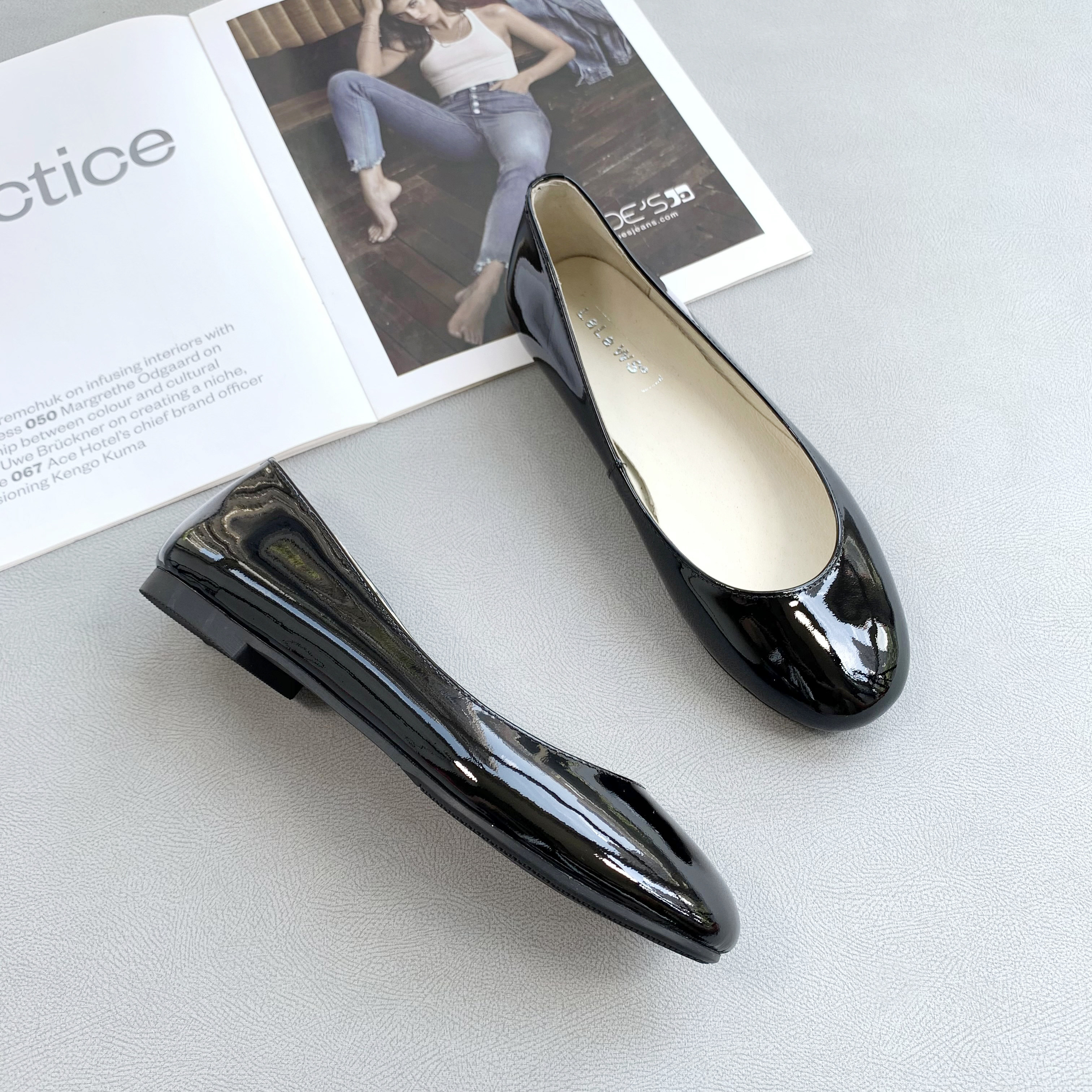 新款漆皮圆头黑色小皮鞋浅口百搭真皮奶奶鞋芭蕾舞平底单鞋女工鞋