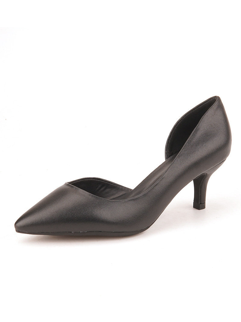 他她女孩真皮细跟尖头空姐工作鞋黑色高跟鞋气质工装职业皮鞋单鞋