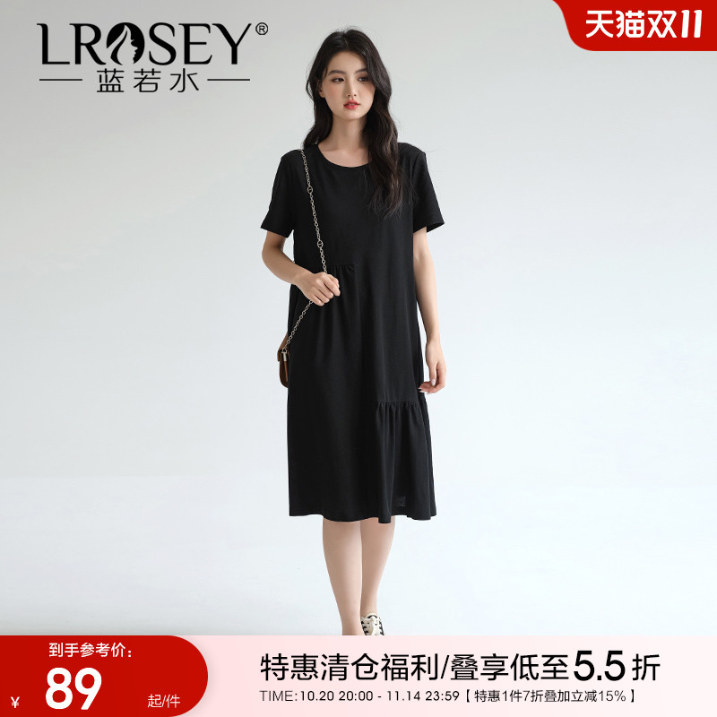 蓝若水大码女装时尚赫本风气质连衣裙胖MM夏季新款宽松显瘦小黑裙
