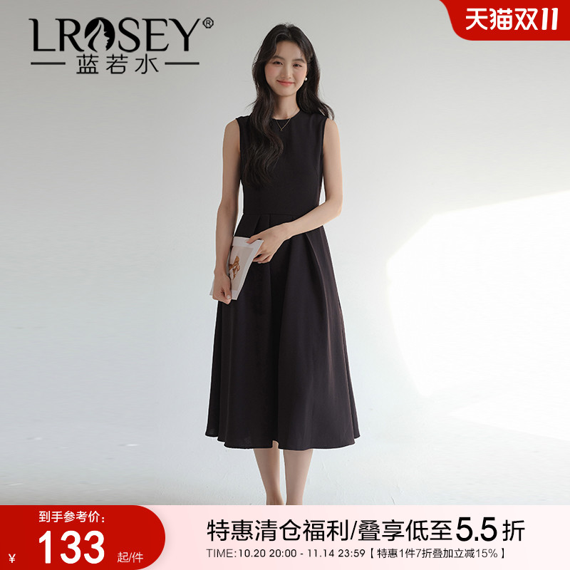【轻奢赫本风无袖连衣裙】蓝若水大码2025夏装新款气质收腰小黑裙