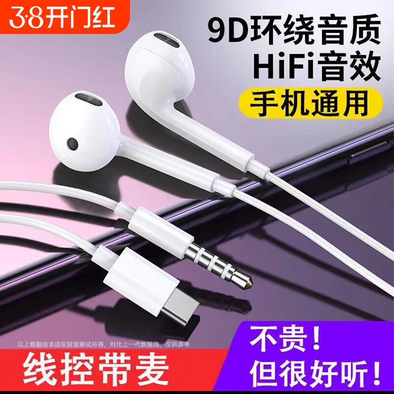原装正品重低音耳机type-c接口有线入耳式隔音降噪高音质耳塞圆口