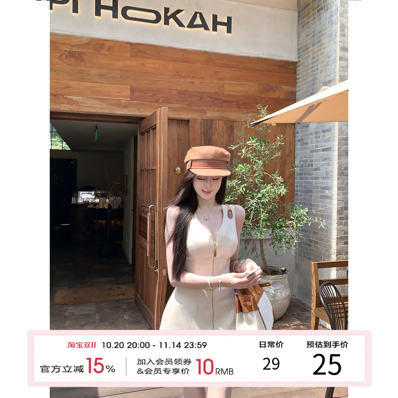 项天鹅er 法式无袖连衣裙女2025秋季新款V领气质a字裙露肩裙子