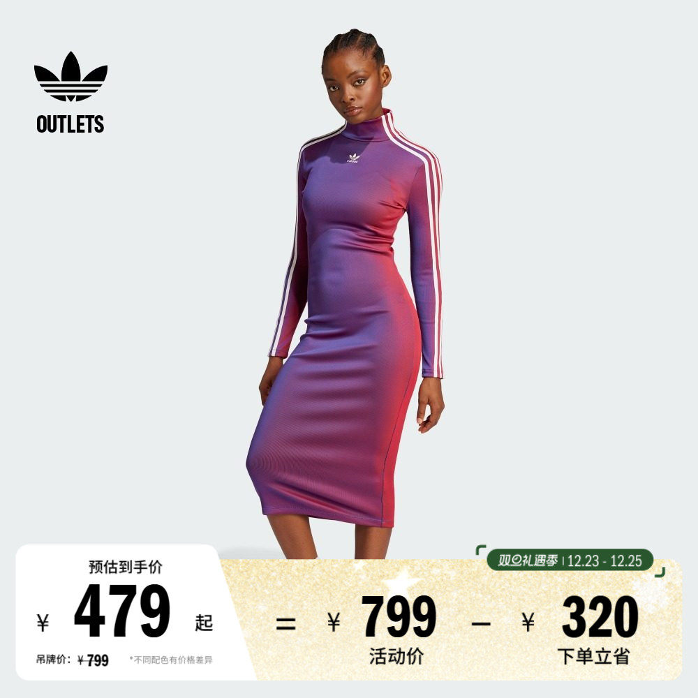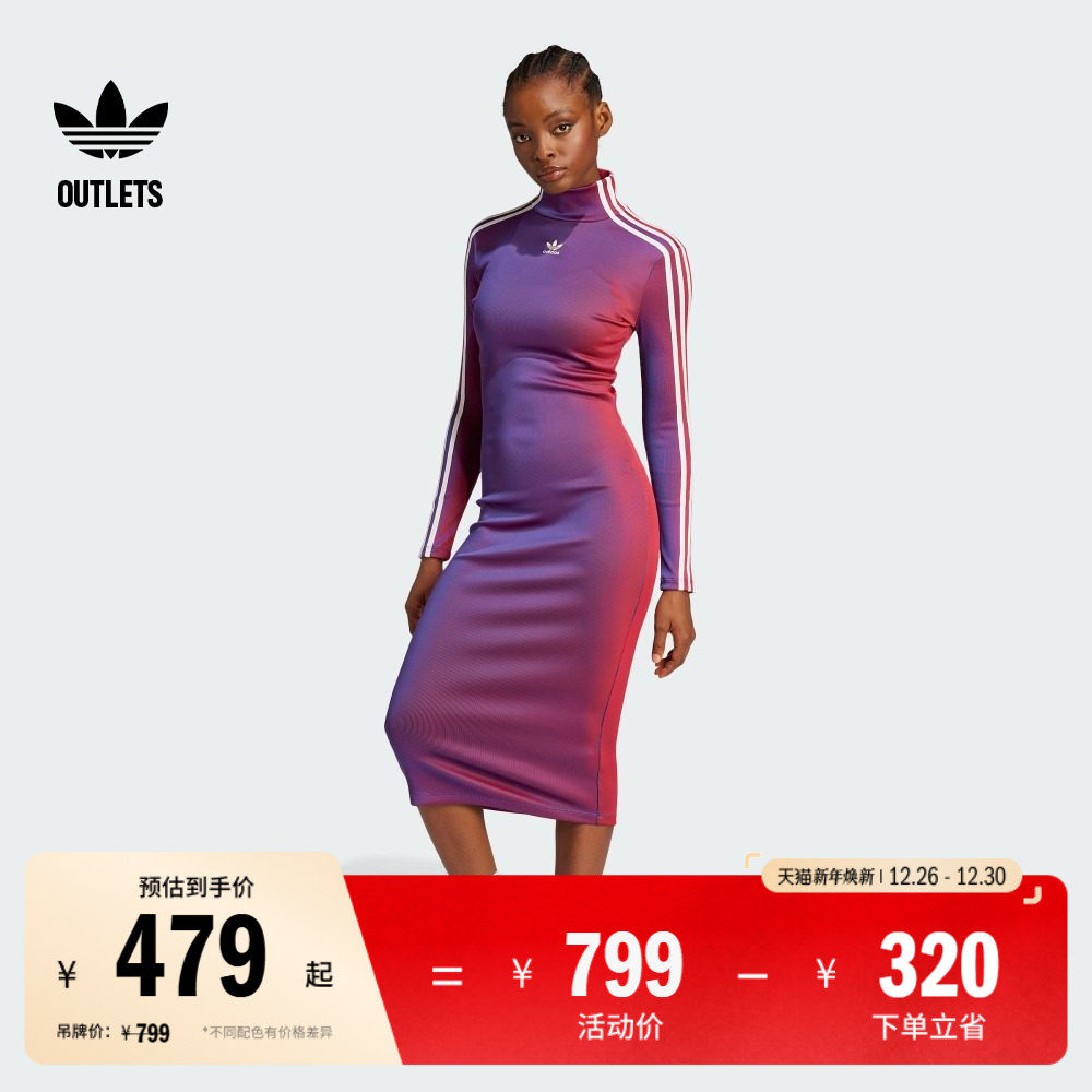 双拉链罗纹针织长袖连衣裙女装adidas阿迪达斯官方outlets三叶草