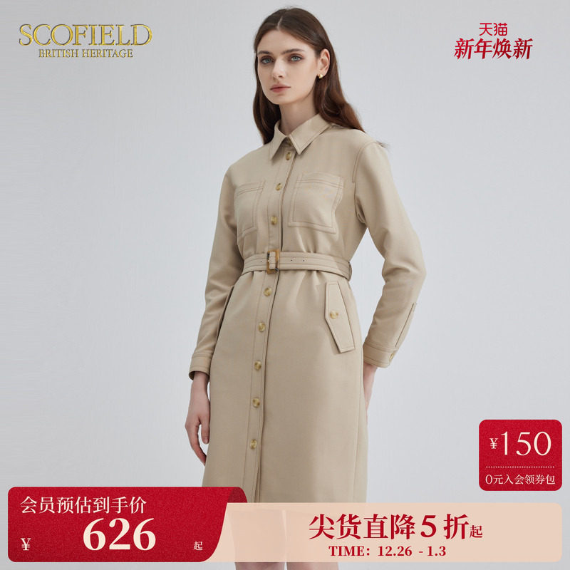 Scofield简约衬衫裙气质收腰通勤时尚率性长袖连衣裙女装