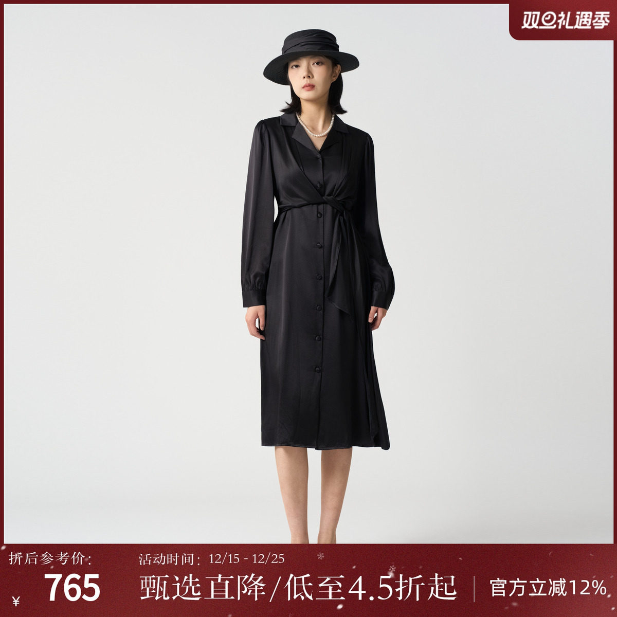 晚白2025秋冬爆款轻奢法式赫本风黑色裙子气质小黑裙长袖连衣裙女