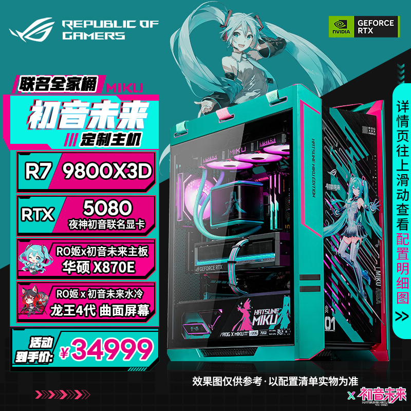 华硕ROG全家桶太阳神RO姬x初音未来联名rog主机 游戏DIY组装电脑