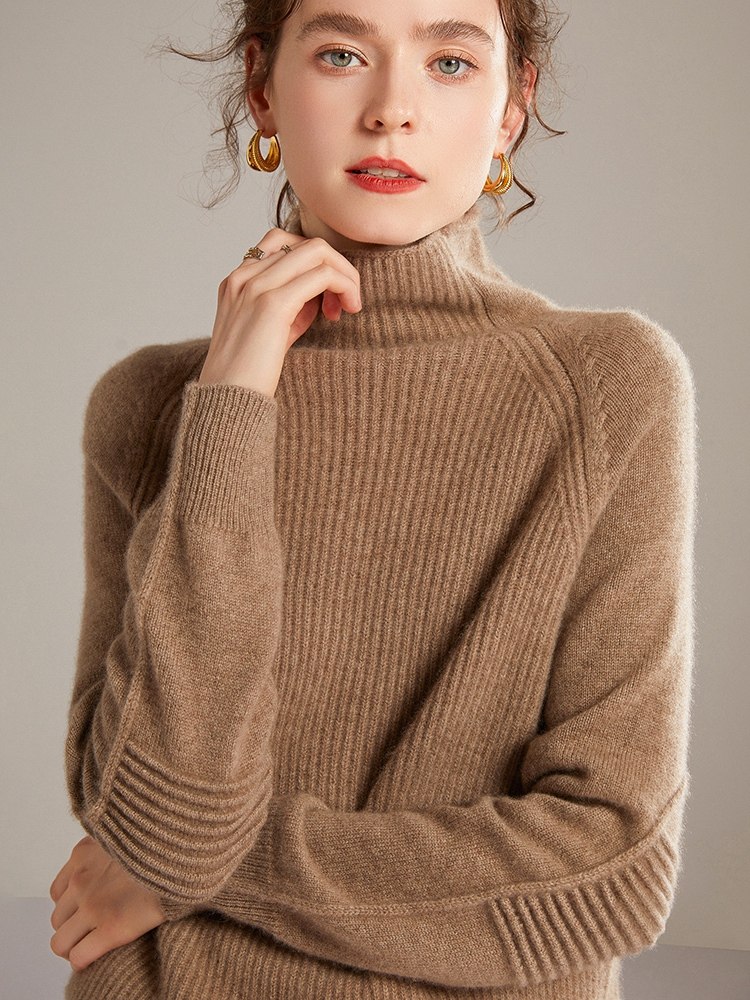 高领羊绒衫女套头加厚毛衣100纯喀什米尔羊毛2023秋冬宽松插肩袖