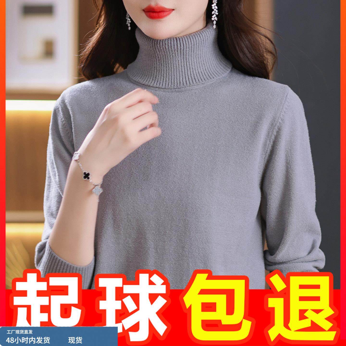 秋冬新款高领毛衣女套头加厚保暖软糯内搭针织衫灰色两翻领打底衫