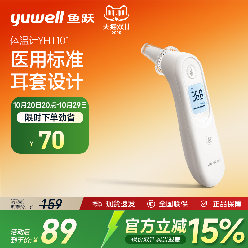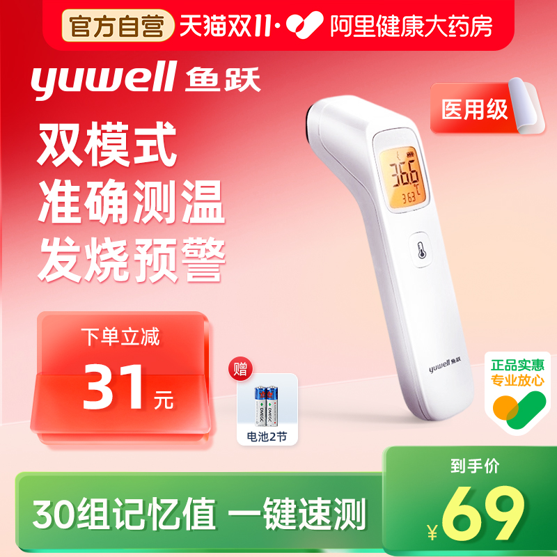 百亿鱼跃医用耳温枪婴儿体温计红外电子体温枪家用测温枪YHT100