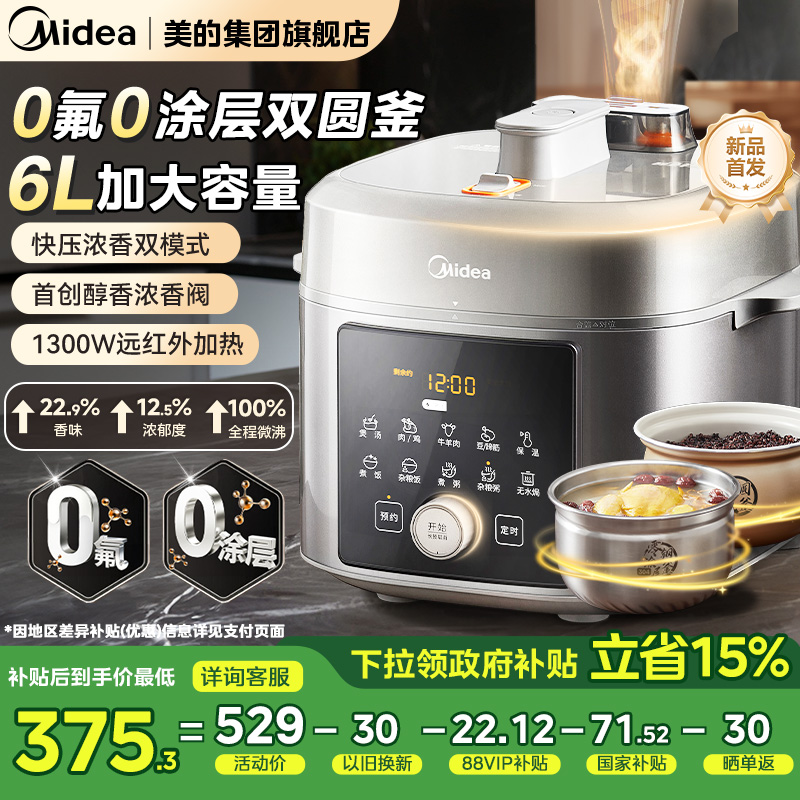 美的电压力锅家用6L多功能新款0涂层全自动电高压锅正品电压锅