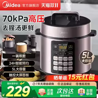 美的电压力锅家用5L大容量双胆饭煲全自动多功能高压锅官方旗舰店