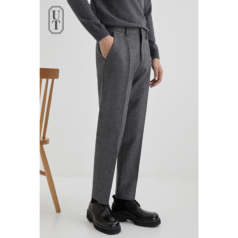 YUXIAN秋冬羊毛混纺毛呢长九分西裤保暖加厚松紧休闲商务长裤男士