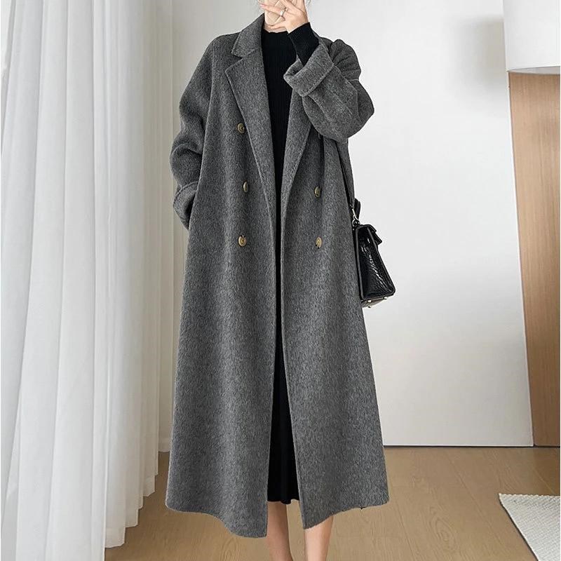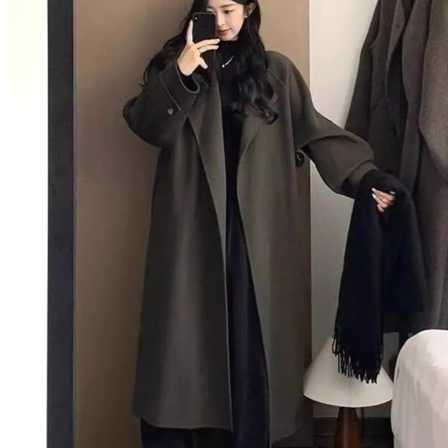 特大码女装胖mm韩系黑灰色毛呢大衣女冬季加厚高级感过膝呢子外套