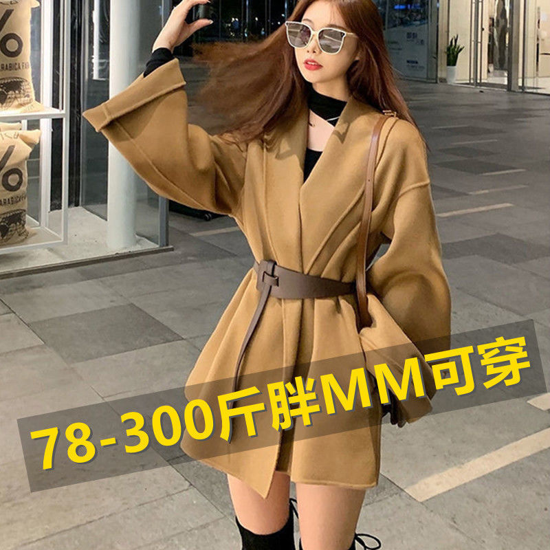 大码双面毛呢外套女冬新款300胖mm200斤加肥加大宽松显瘦呢子大衣