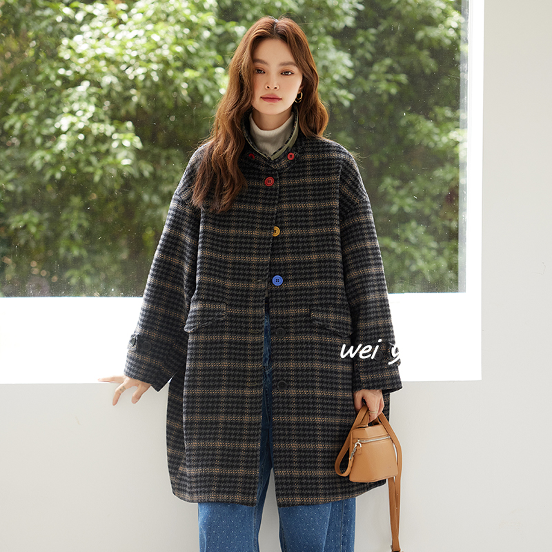 薇语大码女装格子毛呢外套女2025秋新款胖mm通勤宽松呢子大衣女