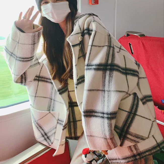 大码女装胖mm加厚黑色格纹毛呢大衣女秋冬新款高级感短款呢子外套