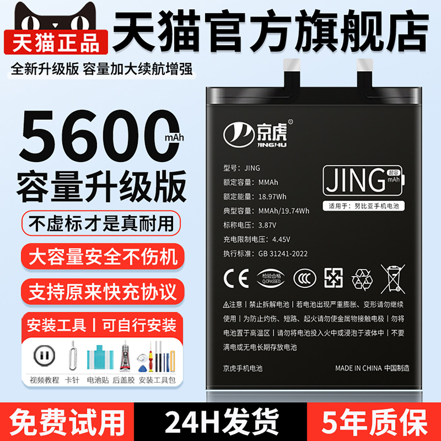 【超密度】京虎适用【红魔6spro电池】魔改大容量7pro6pro游戏手机5G/5S7 7spro努比亚红魔6非装原厂NX669J-S