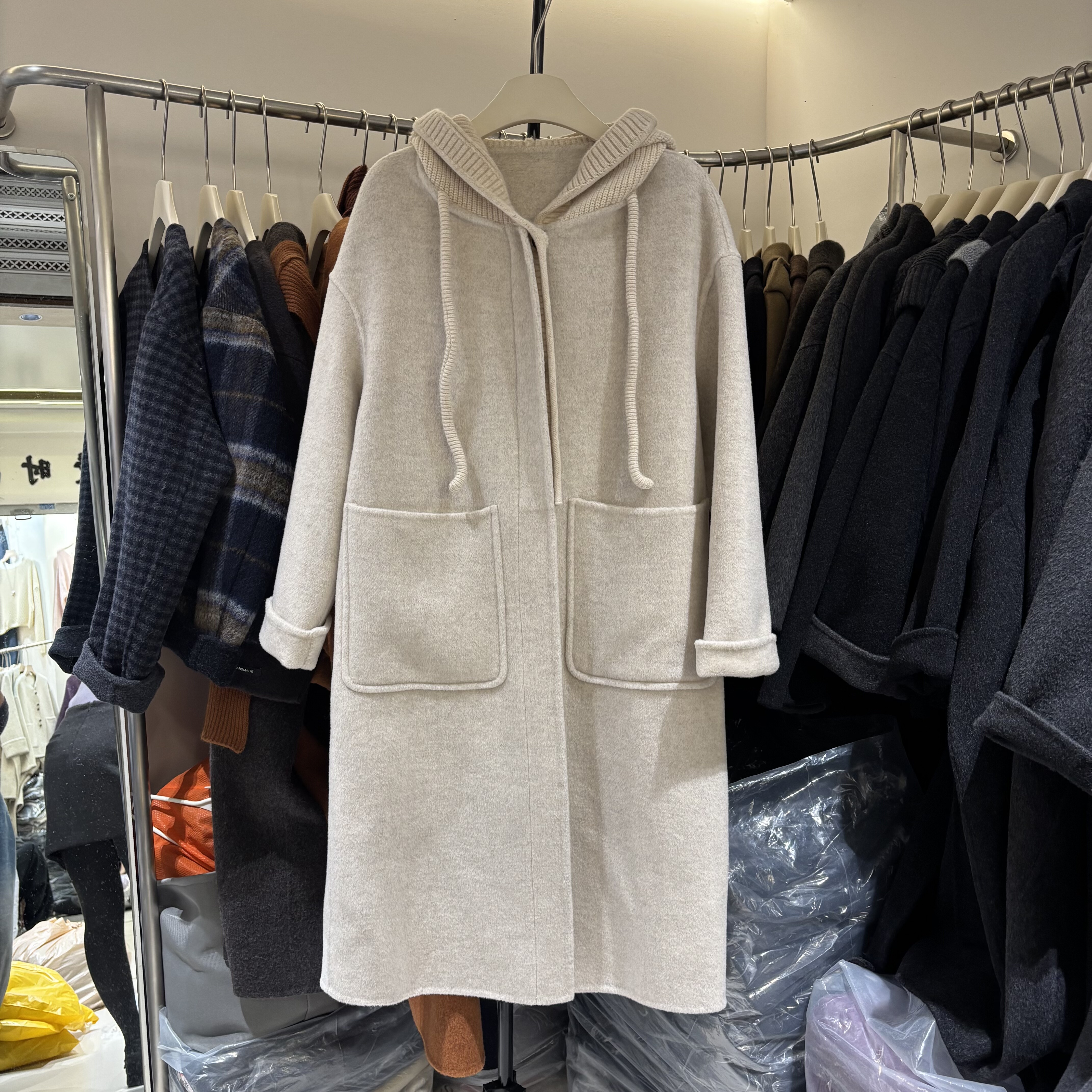 高级感新秋冬赫本复古韩版宽松连帽双面羊绒大衣女毛呢外套中长款