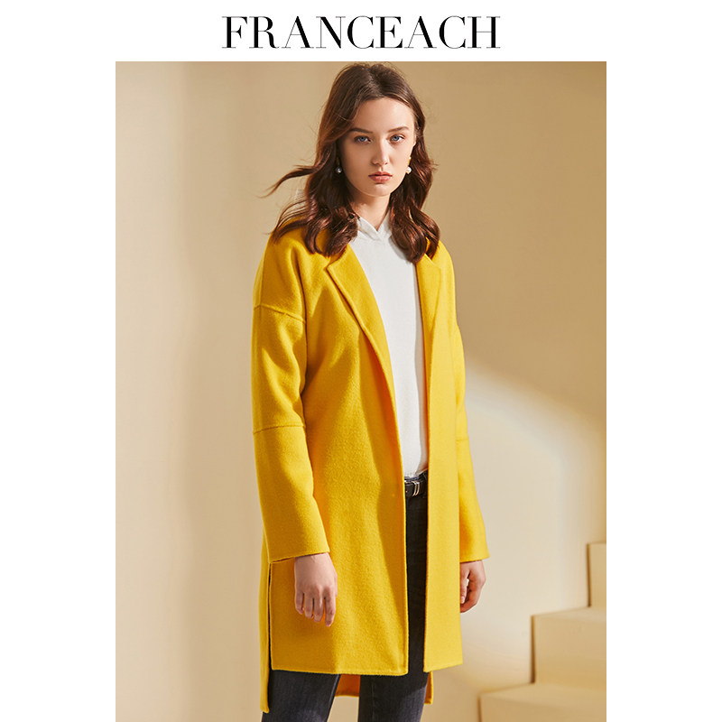 品牌女装双面呢大衣女黄色双面绒羊毛呢子大衣女毛呢外套中长款冬