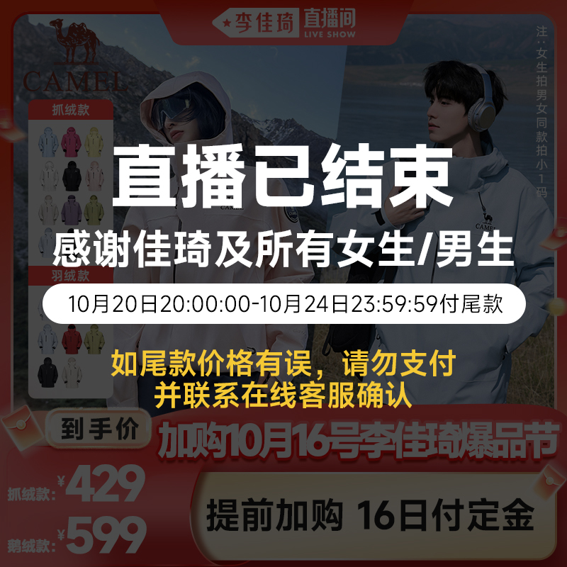 【李佳琦直播间美妆节付定金】骆驼雨神抓绒羽绒内胆三合一冲锋衣