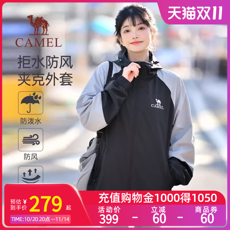 Camel骆驼官方春秋新款防风防水男装夹克拼色时尚风衣外套女