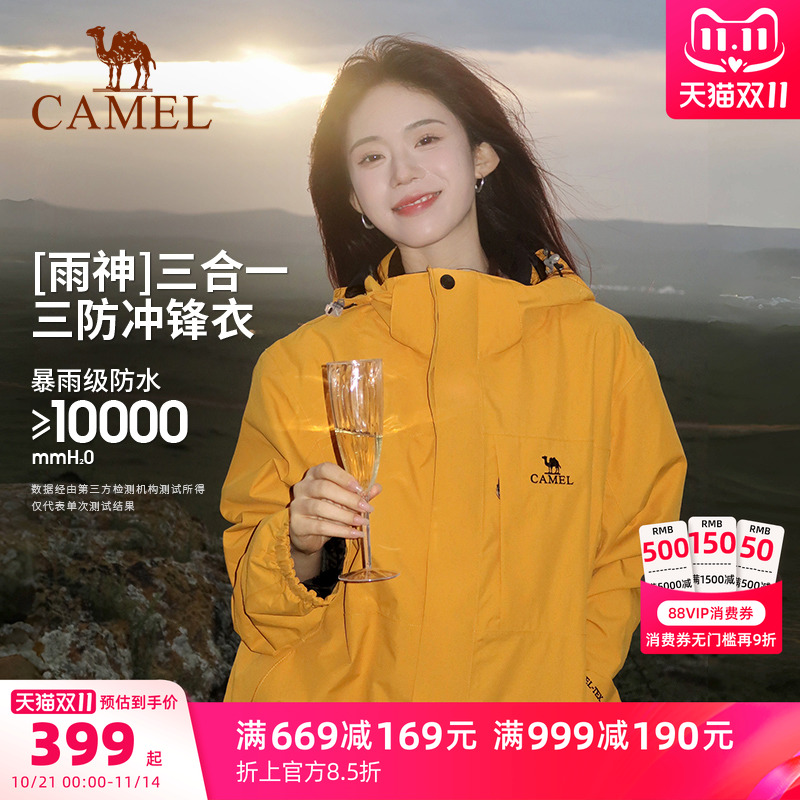 【蜂狂双11】骆驼3514系列户外冲锋衣男女三合一防水外套登山服