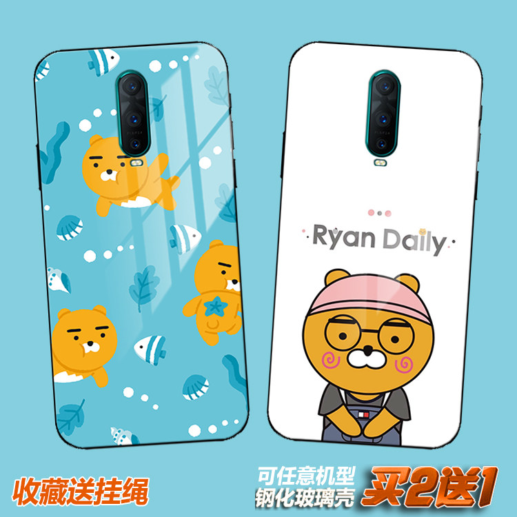 Ryan kakao可爱适用于oppor17女pro萌11熊s 9 plus a7x玻璃手机壳