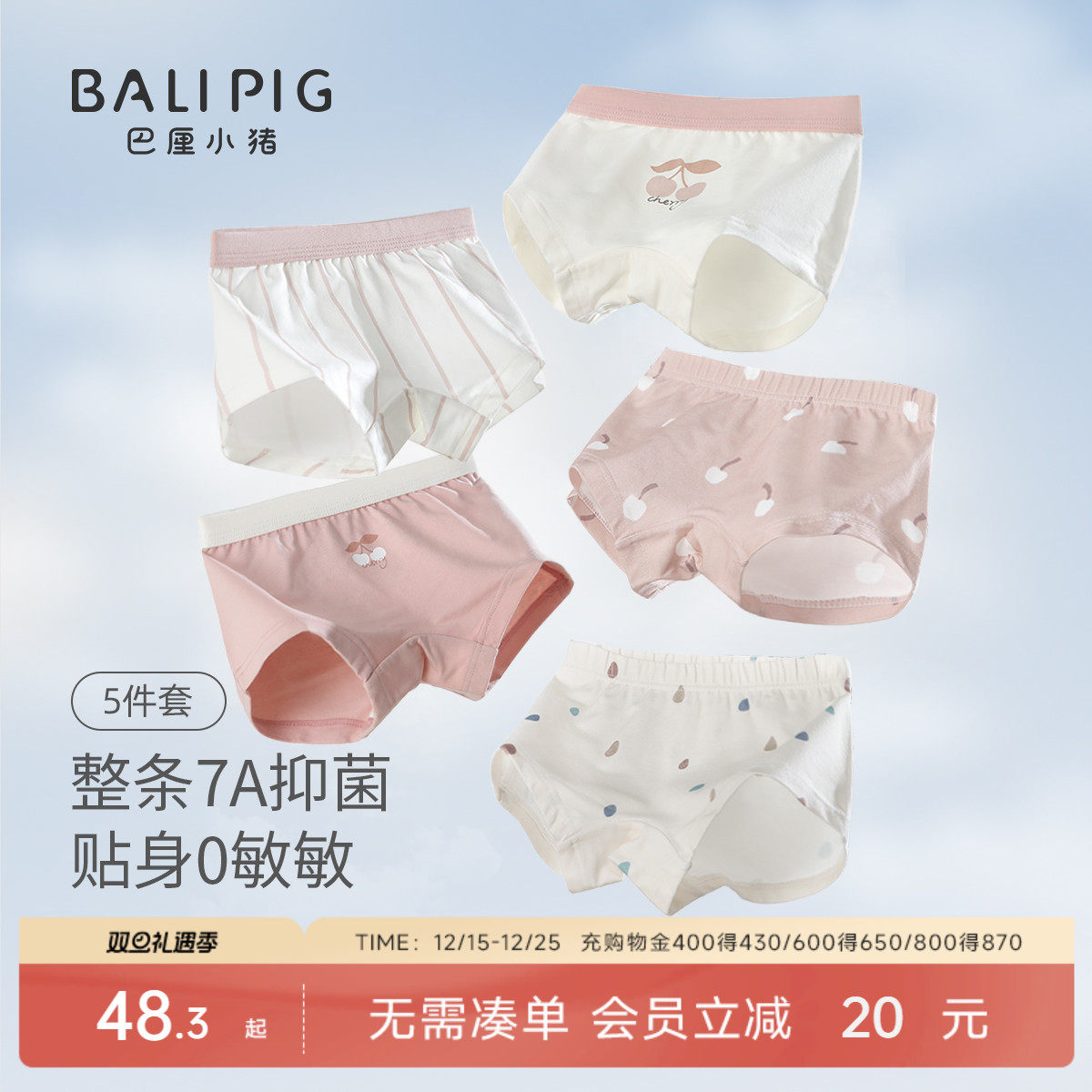 巴拉巴拉儿童内裤棉a类女童平角短裤小童中大童宝宝四角裤五条装