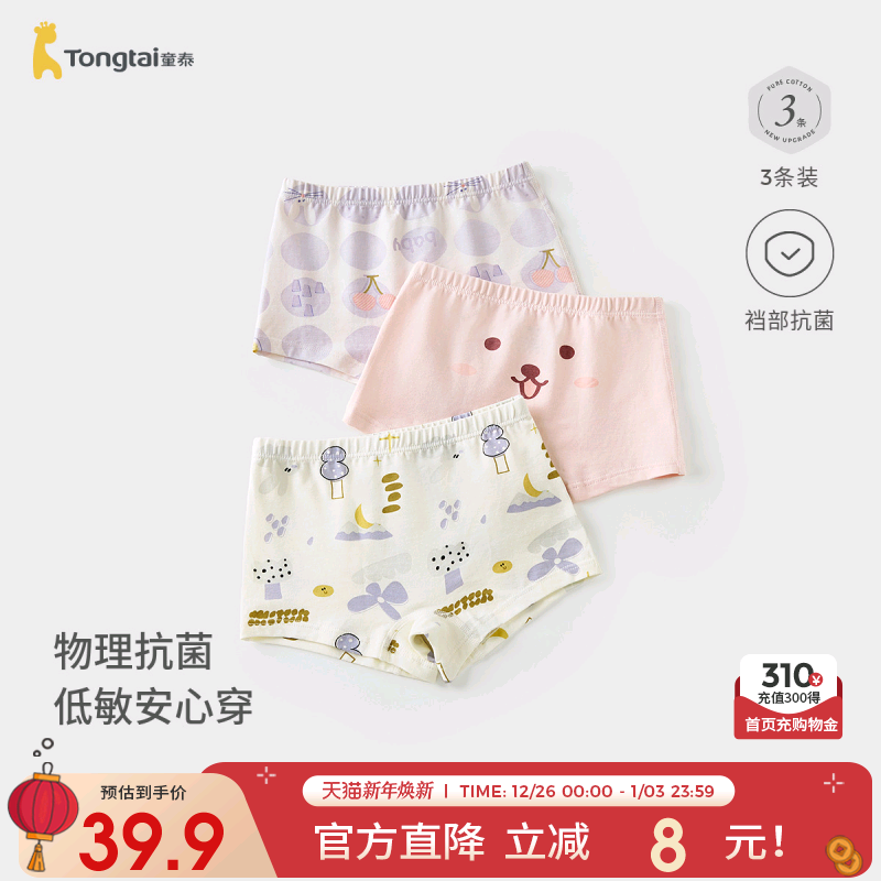 童泰女宝宝内裤女童短裤女孩吸汗透气四角裤中大童可爱舒适平角裤
