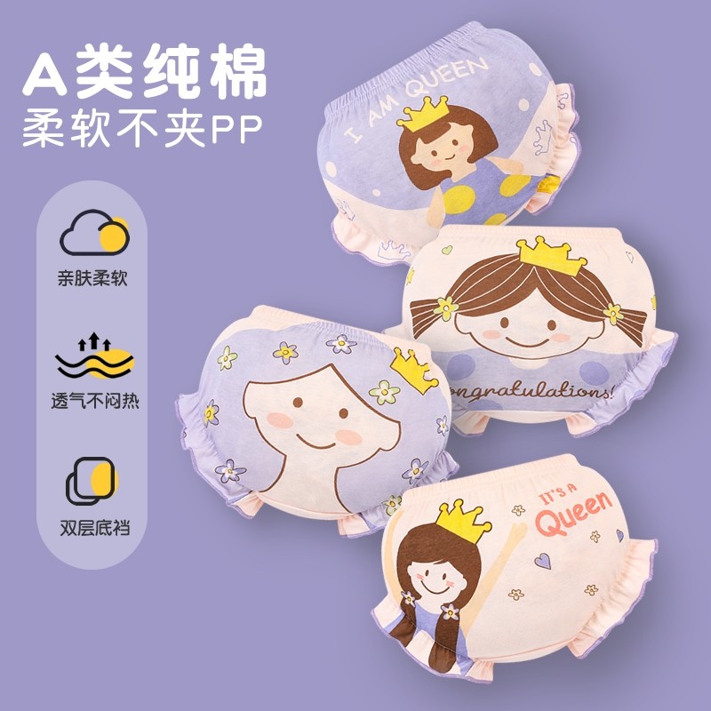 宝宝内裤女小童a类纯棉不夹屁屁2岁小女孩平角裤儿童全棉四角短裤