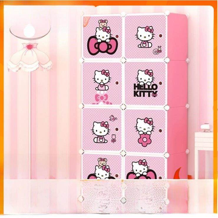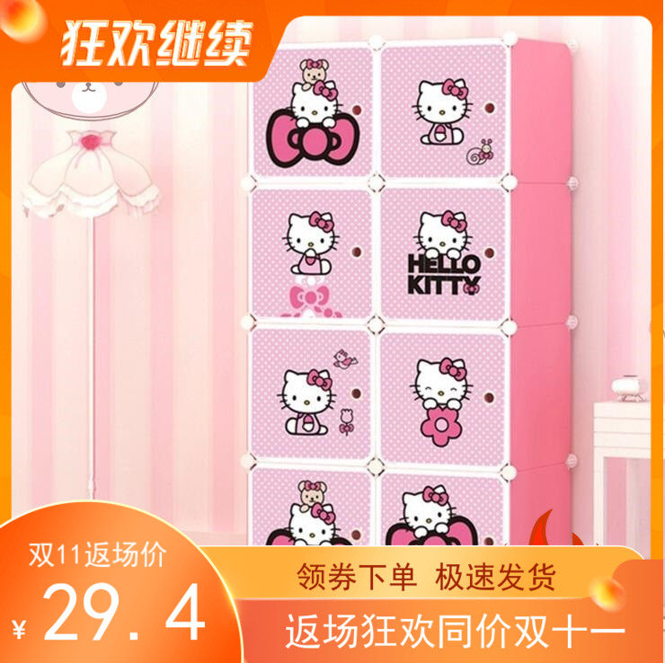 儿童卡通衣柜Kt猫宝宝收纳柜塑料多层收纳盒女孩粉色房间简单衣柜