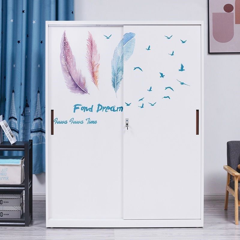 环保铁皮衣柜家用卧室推拉门简约儿童卡通衣柜阳台防潮带锁储物柜