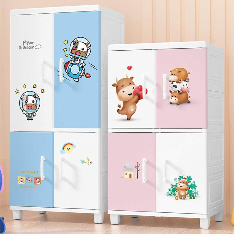 双开门收纳柜大号加厚塑料卡通儿童衣柜玩具储物柜子宝宝小孩衣橱