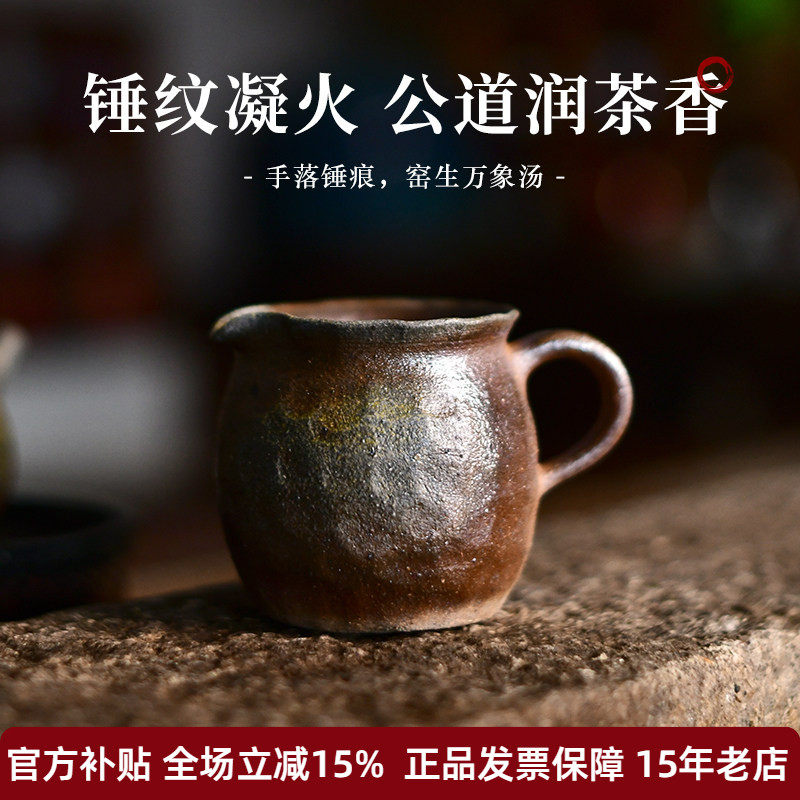 宏中 宜兴本山老段泥紫砂公道杯 古法土窑松木柴烧窑变落灰分茶器