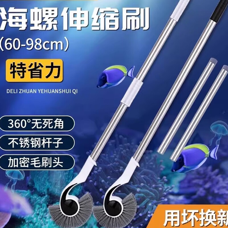 森森鱼缸刷子清洁长柄鱼缸清理工具无死角海螺刷海马刷擦清洗神器