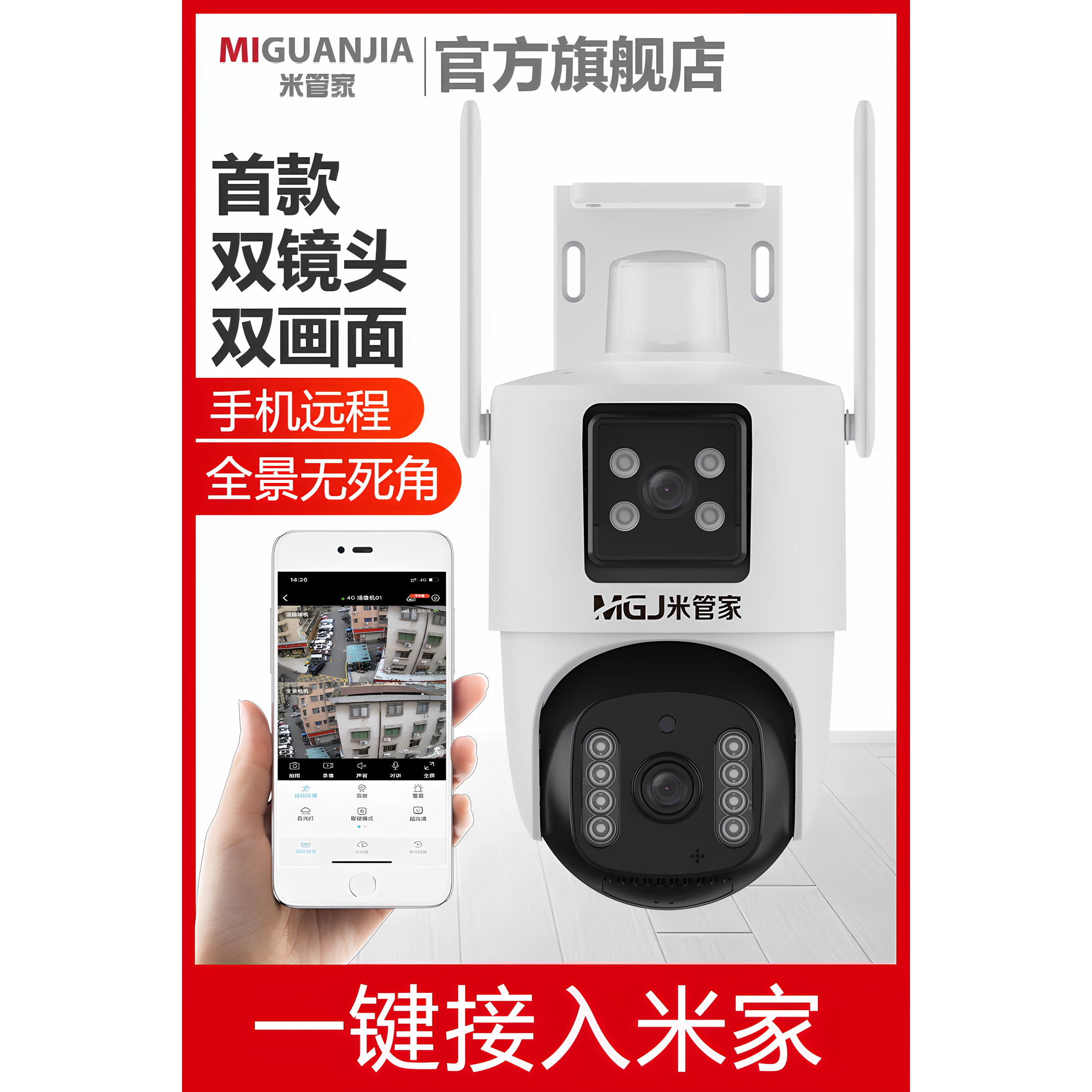 摄像头监控双画面家用无线监控器远程手机室外夜视高清360度户外