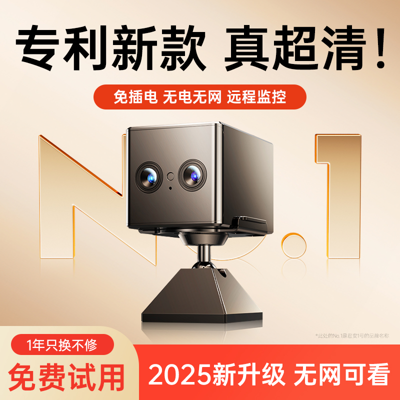 免插电摄像头无需网络无线手机远程高清夜视家用摄影头免打孔智能4G监控器WIFI室内外套装家庭门口充电录像机