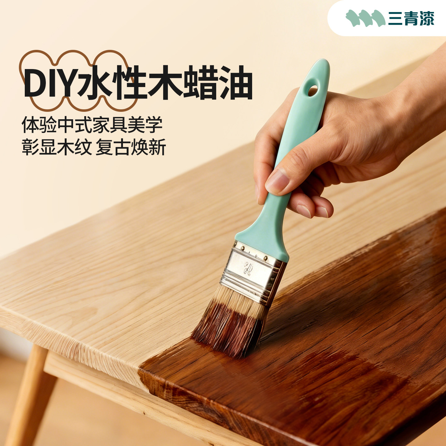 三青水性木蜡油实木透明色防水防腐防霉胡桃色室内家具清漆木器漆