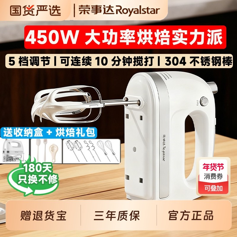 荣事达电动打蛋器商用家用手持式打发淡奶油烘焙打蛋机450W大功率