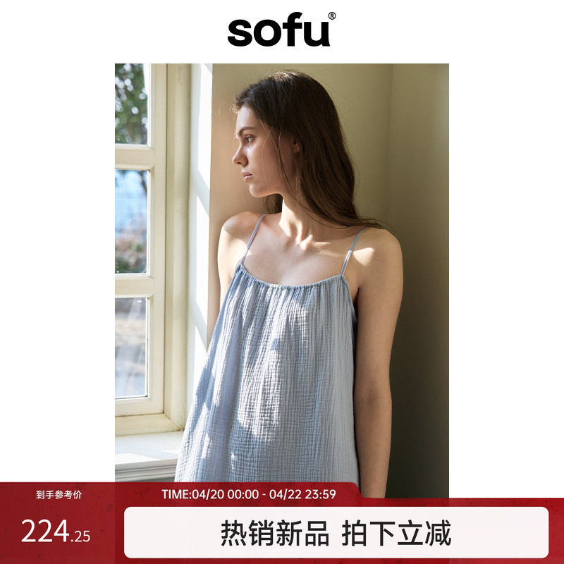 sofu【双层纱系列】吊带裙睡裙女2026新款长款睡衣裙可外穿居家服